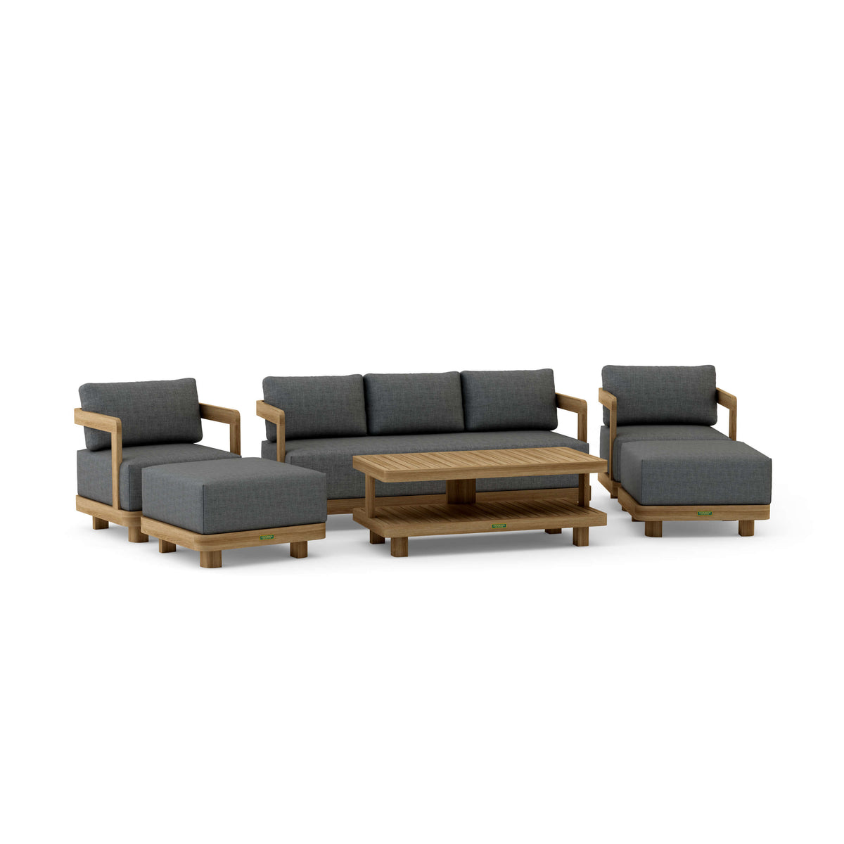 Heavy Teak: Thicker teak (3 inches or more) is used for deep seating frames. The natural density and strength of teak prevent the deep seat frame from sagging over time.